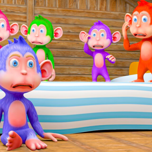 New 3D 4k animated 5 Pyaare Bandar Hindi song for kids Pach pyare bandar palang pe kud rahe the ek gir gya aur chot lag gyi….. Mama ne phone kiya doctor ko. Doctor bola koi bi bandar ab palang par kudega nehi Char pyare bandar palang pe kud rahe the…