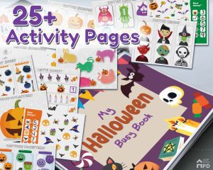 There are ample of halloween activites for kids in this Printable Halloween Busy Book by AtHomePrintDesigns.